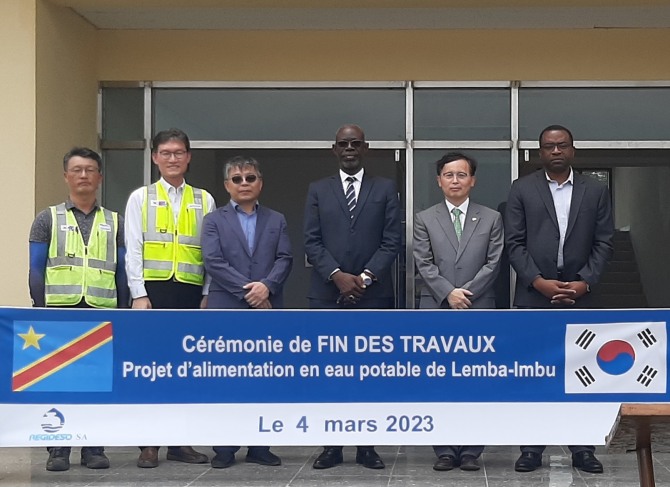 이미지 확대보기DR콩고 수도 킨샤사 남동부 렘바임부 킴반세케 지역에서 진행된 준공식에는 안남규 현대엔지니어링 현장소장과 발주처인 레지데소(DR콩고 상수도공사)의 무톰보(Mutombo David) 사장, 조재철 주콩고민주공화국 대한민국대사, 이상범 농어촌공사 감리단장 등이 참석했다.