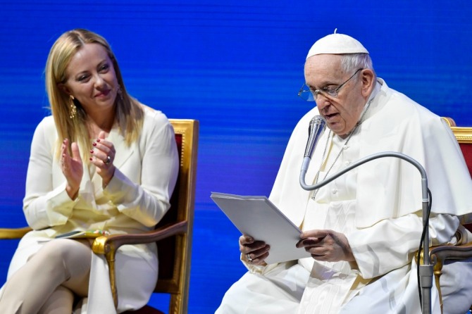 이미지 확대보기프란치스코 교황과 조르자 멜로니 이탈리아 총리가 이탈리아의 인구 위기에 공감을 표시하고 나섰다. 지난 12일(이하 현지시간) 이탈리아 수도 로마에서 이탈리아 저출산재단과 이탈리아 가족협회포럼 후원으로 열린 인구 위기 관련 컨퍼런스에 참석한 자리에서다.