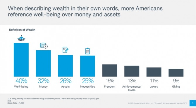 미국을 대표하는 증권사이자 금융자산 운용사로 지난 수십 년간 '부자'라는 주제를 놓고 21~75세 미국민 1000명을 대상으로 연례적으로 추적 조사해온 찰스슈와브가 그간의 설문조사 결과와 지난 3월 기준으로 이뤄진 올해 설문조사를 비교 분석한 결과다.