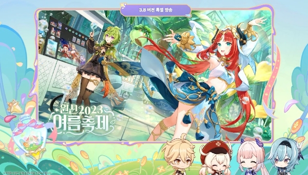 이미지 확대보기올해 국내에서 열릴 오프라인 행사 '2023 원신 여름 축제'의 일정이 오는 7월 20일부터 23일까지로 확정됐다. 서울 송파구에서 실내 행사 형태로 열리며 정확한 장소는 아직 공개되지 않았다.