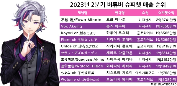 이미지 확대보기유튜브 통계 분석 플랫폼 플레이보드에 따르면 후와 미나토는 올 2분기 유일하게 2억원 이상의 슈퍼챗 수익을 거둔 버튜버로 조사됐다.