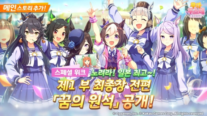 또한, 메인 스토리 제1부 최종장 '꿈의 원석'을 업데이트했다. 이용자들은 레이스를 클리어하면서 스토리를 진행할 수 있으며, 모든 에피소드를 열람할 경우 서포트 카드 'SSR [짜여져가는 마음] 팀 <시리우스>'를 보상으로 획득할 수 있다.