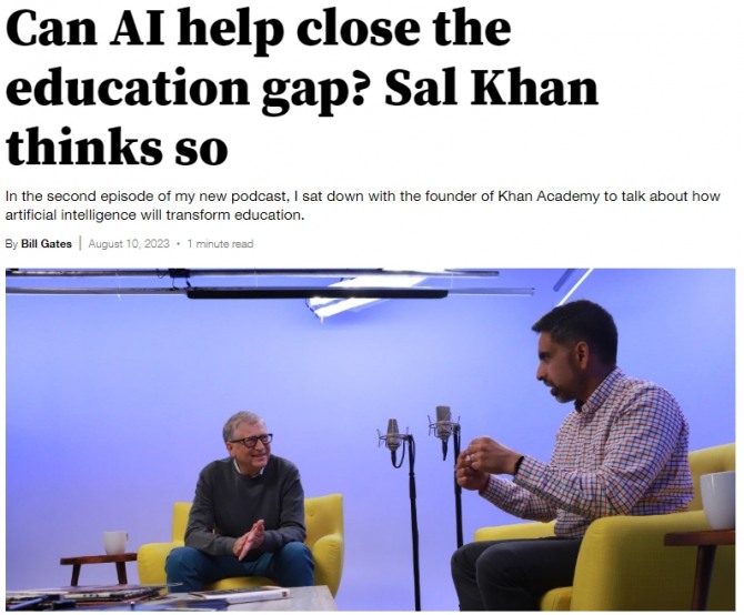 칸아카데미는 방글라데시 출신의 온라인 교육가인 칸이 지난 2008년 창립한 온라인 무료 교육 플랫폼으로 게이츠도 이 사이트에 650만달러(약 86억원)를 후원한 사실상 공동창업자다.