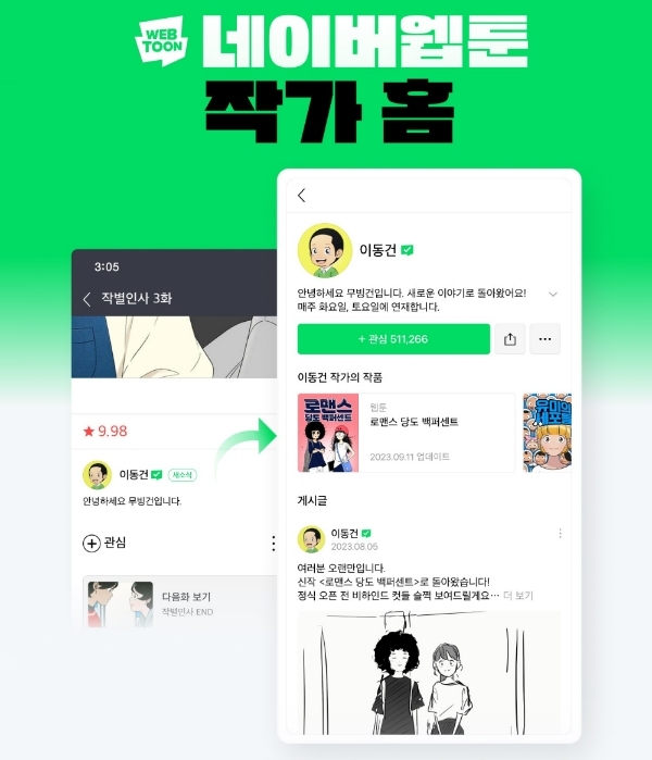 김효정 네이버웹툰 최고 프로덕트 책임자(CPO)는 “작가 홈은 창작자의 아이덴티티를 보여주면서도 독자와 직접 소통, 새로운 동기 부여가 될 수 있는 기능"이라며 "웹툰을 감상하는 플랫폼을 넘어 작가와 독자를 연결하고 동반 성장하는 커뮤니티로서 건강한 창작 생태계가 정착할 수 있도록 지속 노력할 것"이라고 전했다.