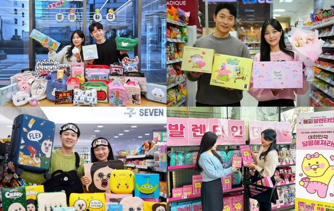 업계에 따르면 CU, GS25, 세븐일레븐, 이마트24 등 주요 편의점 4사는 일제히 밸런타인 마케팅에 '시동'을 걸었다. 캐릭터 트렌드가 식지 않으면서 편의점들은 캐릭터 모시기로 특수를 정조준한 분위기다.