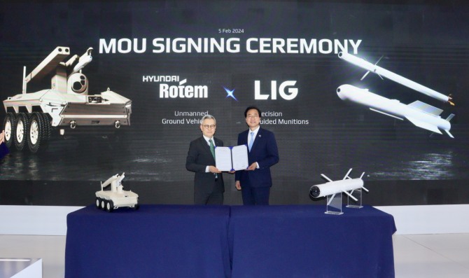 현대로템과 LIG넥스원은 지난 2020년 ‘방산분야 사업협력을 위한 양해각서’를 체결한 이래 협력관계를 꾸준히 이어오면서 상호 기술이 연동된 제품을 선보이고 있다. 현대로템의 최신예 무인체계 플랫폼에 LIG넥스원의 유도무기체계 및 대(對)드론 통합 방어체계(ADS)등이 탑재되는 식이다.