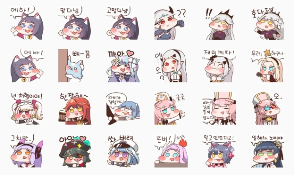 이미지 확대보기'오늘도 에하! 에픽세븐콘'은 총 32종의 이모티콘으로 구성됐다. 에픽세븐 속 캐릭터들과 세계관을 반영한 것은 물론 '존버', '한 잔 해' 등 유행어들을 반영했다.
