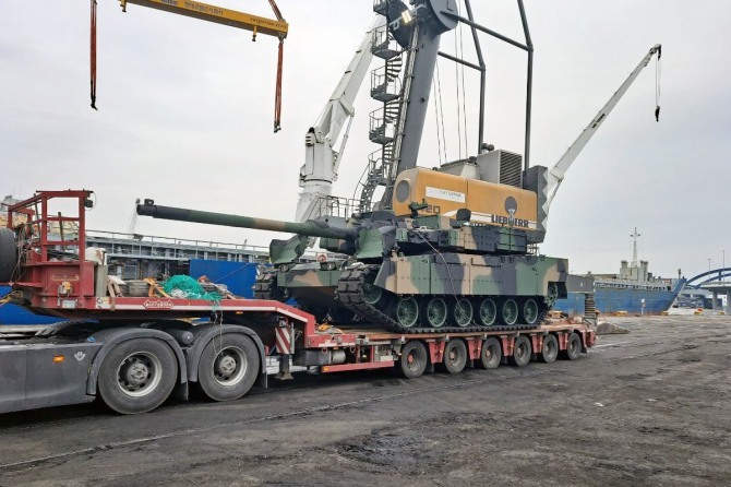 이미지 확대보기현대로템은 12일(현지시간)부터 20일에 걸쳐 폴란드 그드니아(Gdynia)에 폴란드 K2 전차 총 18대가 순차적으로 도착했다고 21일 밝혔다.