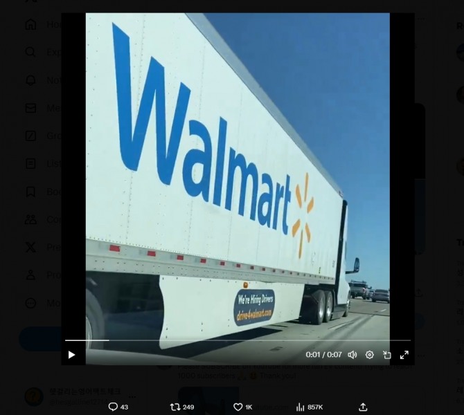 7일(이하 현지시각) 일렉트렉에 따르면 월마트 로고와 코스트코 로고를 부착한 세미 전기트럭이 캘리포니아주를 비롯한 미국 일부 지역 도로에서 주행 중인 모습이 최근 카메라에 포착돼 소셜미디어를 통해 공개됐다.