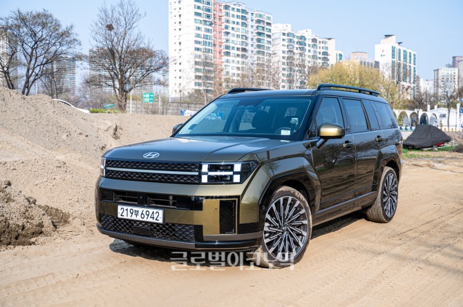 현대차의 엠블럼을 재해석한 전·후면의 H라이트를 비롯해, 대형 테일게이트로부터 만들어진 독특한 측면 형상과 날카로운 볼륨감의 펜더, 21인치 대형 휠 등이 어우러지며 강인하면서도 견고한 느낌을 극대화한다.