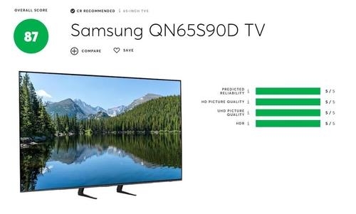 특히 삼성전자가 올해 미국에 출시한 65형 OLED TV(모델명 QN65S90D)는 LG올레드 TV와 함께 최고점인 87점을 받았다.