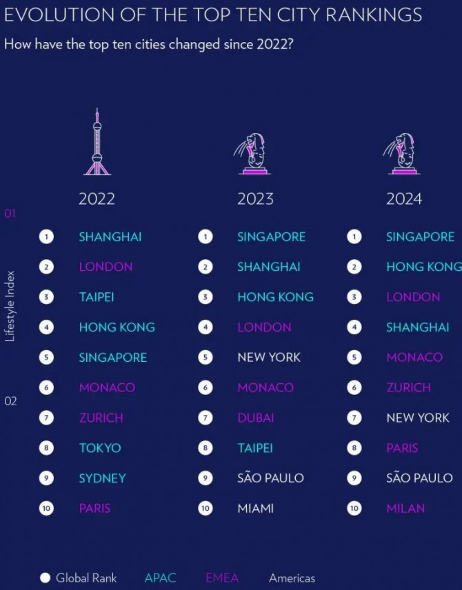 이에 반해 2022년 1위였던 중국 상하이가 기존보다 4위로 후퇴한 것은 부동산 시장의 어려움과 소비심리 약화가 원인일 가능성이 높다고 보고서는 분석했다.