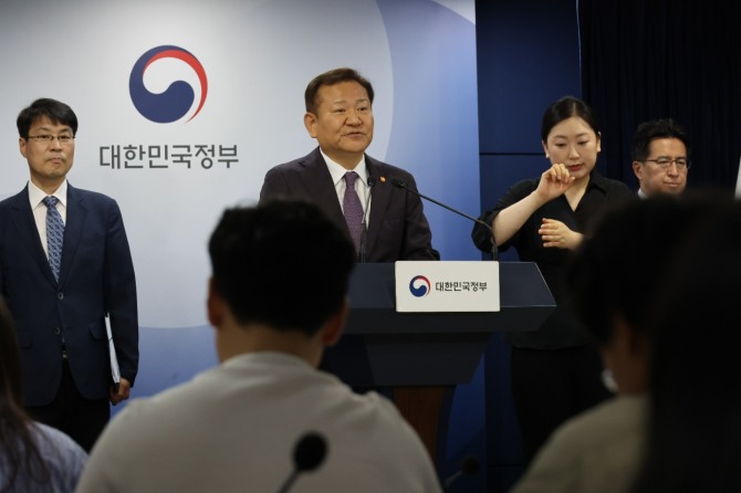 이미지 확대보기이상민 행정안전부 장관은 1일 정부서울청사에서 관계부처 합동 브리핑을 통해 인구전략기획부 신설안 등 내용을 골자로 한 정부조직 개편방안을 발표했다.