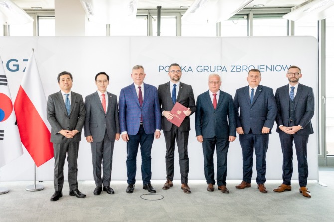 이미지 확대보기현대로템은 지난 9일(현지시각) 폴란드에서 현지 국영방산그룹 PGZ와 K2PL 생산·납품 사업을 진행하기 위한 신규 컨소시엄 합의서를 체결했다고 10일 밝혔다.
