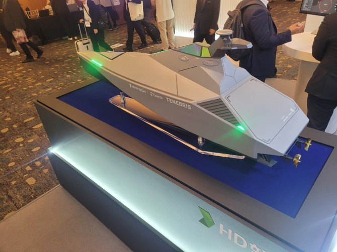 이미지 확대보기HD현대는 선박 건조에 이미 적용 중인 모듈러 공법을 테네브리스 개발에도 활용한다. 계열사 ‘아비커스’의 자율운항 시스템도 도입된다. REAIM 전시 현장에 있던 HD현대중공업 관계자는 기자에게 "모듈러 공법으로 경제적이면서도 빠르고 많이 생산할 수 있다"며 "사람이 타지 않는 무인정이기 때문에 한두 번 공격받는다고 해서 막대한 타격을 입지 않는다는 장점이 있다"고 설명했다.