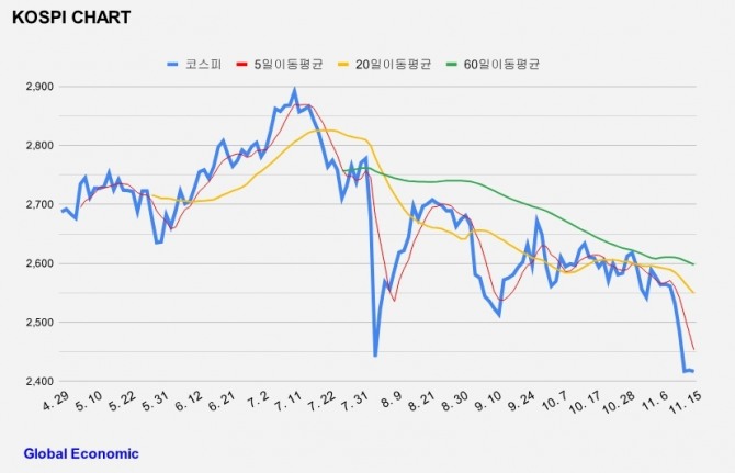 이미지 확대보기이날 한국거래소에 따르면, 코스피지수는 전 거래일 보다 2.00포인트(0.08%) 하락한 2416.86에 거래를 마감했다.