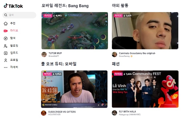 틱톡 라이브 방송에서 인기를 끄는 게임들을 살펴보면 동남아시아 시장의 국민 게임 '가레나 프리 파이어'와 '모바일 레전드 뱅뱅', 아메리카 시장의 주류 모바일 게임 '콜 오브 듀티 모바일' 등이 눈에 띈다.
