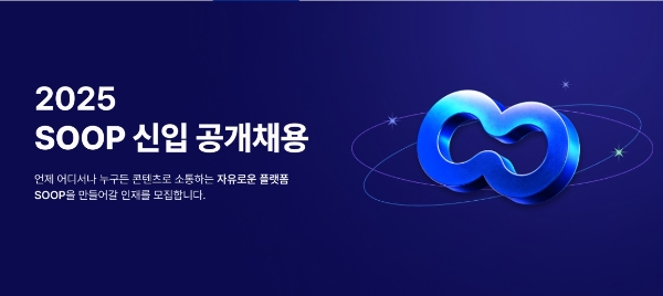 이미지 확대보기인터넷 방송 플랫폼 SOOP이 2025년 신입 사원 공개 채용(공채)에 나선다.