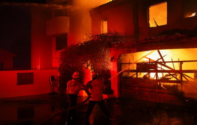 이미지 확대보기로스앤젤레스의 고급 주거지를 강타한 대규모 산불로 할리우드 스타들의 수억 달러 호화 주택들이 잿더미가 됐다. 월스트리트저널(WSJ)은 LA 지역에서 약 1만채의 건축물이 소실됐으며, 최소 10명이 사망하고 팰리세이즈 지역에서만 5300채가 불탔다고 10일(현지시각) 보도했다.