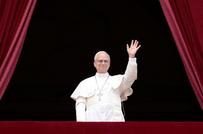 이미지 확대보기레오 교황은 성베드로 대성당의 발코니에서 "결코 다시는 전쟁이 없기"를 기도했다.