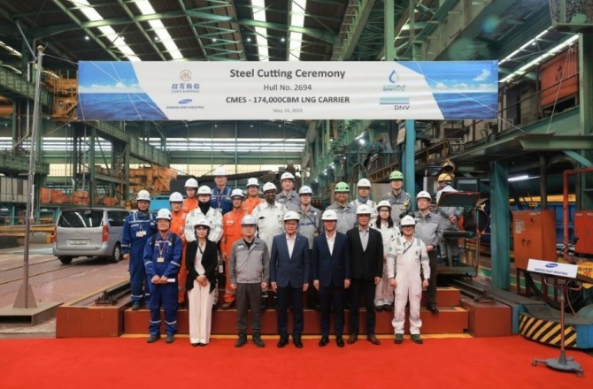 이미지 확대보기보도에 따르면 삼성중공업은 최근 거제조선소에서 선체 번호 2694호 LNG 운반선의 강재 절단식을 열고 본격 공정에 들어갔다. 이 선박은 CMES가 카타르에너지의 2024년 선단 확장 입찰에서 장기 용선 계약을 확보한 LNG 운반선 10척 가운데 하나다. 이날 행사에는 CMES의 쉬후이 부총경리와 삼성중공업의 리왕겐 총경리가 참석해 시작 단추를 함께 눌렀다.
