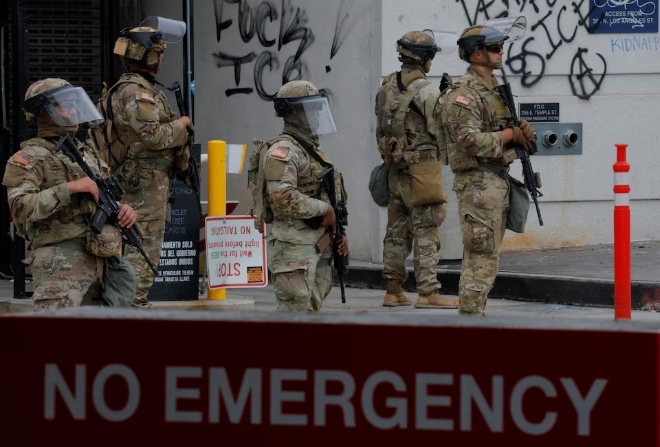NYT에 따르면 트럼프는 지난 7일 밤 국방부에 LA 시위 진압을 위해 최소 2000명의 주방위군 병력을 60일간 연방 지휘하에 동원하라고 명령했다. 국토안보부 산하 이민세관단속국(ICE)의 단속에 반발해 벌어진 이번 시위가 연방정부의 기능과 자산을 위협하고 있다는 이유에서다.