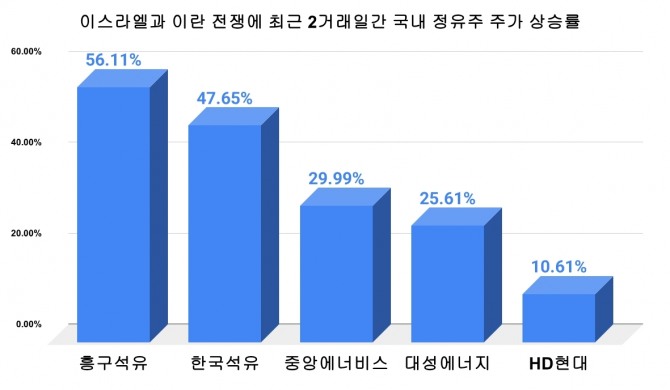 같은 기간 한국석유(47.65%), 중앙에너비스(29.99%), 대성에너지(25.61%), HD현대(10.61%) 등도 강세를 나타냈다.