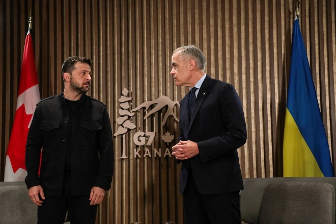 18일(이하 현지시각) BBC에 따르면 카니 총리는 전날 캐나다 앨버타주 카나나스키스에서 열린 G7 정상회의 마지막 날 볼로디미르 젤렌스키 우크라이나 대통령과 공동 기자회견을 열고 “평화가 실현될 때까지 우크라이나에 대한 지원은 흔들림 없이 계속될 것”이라고 밝혔다.