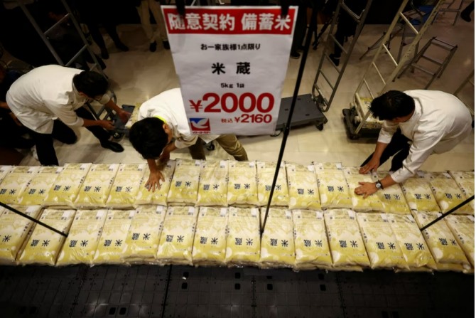 정부는 화급히 대응에 나섰다. 자민당의 차세대 주자로 꼽히는 고이즈미 신지로 전 총리의 아들을 농업대신으로 긴급 투입하고, 쌀 가격을 5kg당 2000엔으로 절반 수준까지 낮추겠다고 약속했다. 정부 비축미 방출과 함께 7월 초까지 슈퍼마켓 평균 쌀 가격은 전주 대비 3% 하락했지만, 여전히 전년 동기 대비 71% 높은 수준이다.