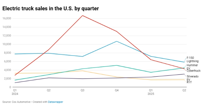 전기 픽업 시장 전반도 주춤하고 있다. 미국의 전기차 스타트업 리비안도 R1T 픽업트럭을 2분기 1752대 판매하며 지난해 같은 기간(3309대)의 절반 수준에 머물렀다.