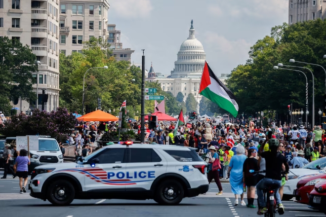 7일(이하 현지시각) 로이터통신에 따르면 워싱턴DC 의사당 인근에서 전날 열린 ‘우리는 모두 DC’ 행진에서 참가한 시민들은 “트럼프는 물러나라”, “DC를 해방하라” 등의 구호를 외치며 시위를 벌였다. 이날 시위에 참여한 한 시민은 “트럼ㅍ의 워싱턴DC 점령에 반대하기 위해 나왔다”며 “연방 경찰과 주 방위군을 거리에서 철수시켜야 한다”고 말했다.