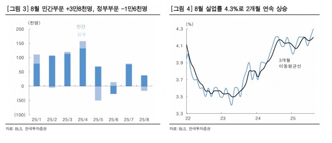 문 연구원은 "연준은 실업률 상승을 이미 예견하고 있다"며 "연준은 6월 경제전망 올해 4분기 평균 실업률을 4.5%로 전망한 바 있고, 이때 연내 2회, 내년 추가 1회 인하 경로를 제시했다"고 설명했다.