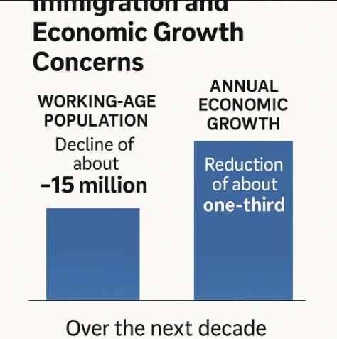 마켓플레이스는 “미국 경제는 노동력과 생산성 두 갈래 힘으로 성장한다”고 설명했다. 스튜어트 앤더슨 미국정책국립재단 전무이사는 “합법 이민과 추방 정책이 그대로 이어지면 앞으로 10년 동안 미국 근로자가 약 1500만 명 줄어들 것”이라며 “그 결과 해마다 경제성장률이 3분의 1로 줄어들어 가계 실질소득에도 큰 타격이 올 것”이라고 분석했다. 그는 트럼프 행정부 출범 뒤 지난 1월부터 8월까지 외국 태생 근로자가 110만 명 줄었지만, 미국 태생 근로자의 실업률은 오히려 높아졌다고 지적했다.