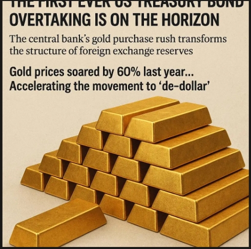 이미지 확대보기각국 정부의 금 보유량이 사상 최초로 미국 국채 보유액에 육박하면서 글로벌 외환보유자산 구성에 중대한 변화가 나타나고 있다. 이는 미국 금융시스템 노출을 줄이려는 각국 정부의 전략적 선택이 가시화한 것으로 분석된다.