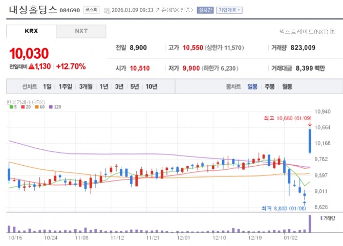 9일 한국거래소에 따르면 이날 오전 9시 33분 기준 대상홀딩스는 전 거래일 대비 12.70% 상승한 1만30원에 거래되고 있다. 대상 역시 5.14% 오른 2만850원에, 풀무원은 전장 대비 4.51% 상승한 1만3220원에 거래중 이다.