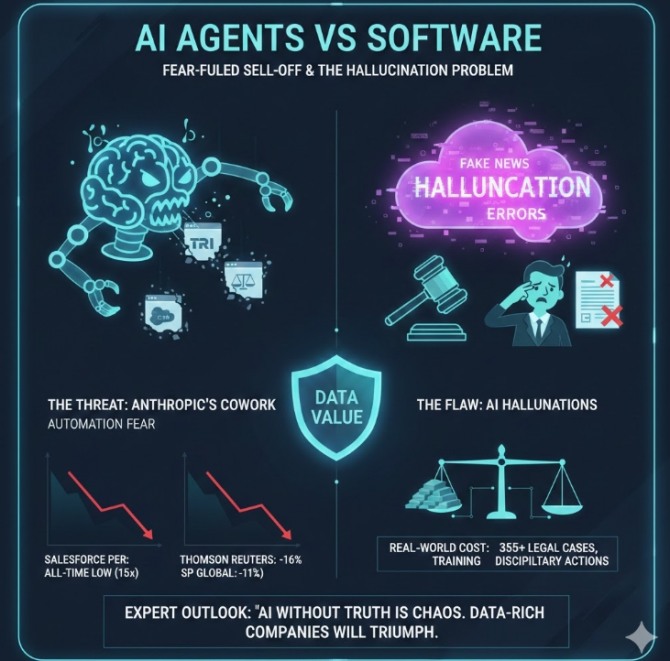 사모펀드 토마 브라보의 올랜도 브라보 회장은 지난달 다보스 포럼 인터뷰에서 "소프트웨어 기업의 가치가 저평가된 지금이 오히려 매수 기회"라고 밝혔다. 시장의 과도한 공포가 걷히고 나면, AI라는 강력한 엔진을 장착하면서도 신뢰할 수 있는 데이터를 보유한 기존 기업의 가치가 다시 주목받을 것이라는 분석이다. AI 에이전트가 ‘마법’처럼 보일 수 있으나, 그 마법이 깨졌을 때의 책임은 온전히 사용자의 몫이다. AI는 기존 소프트웨어와 인간의 데이터를 바탕으로 공생하는 관계일 뿐, 완전한 대체재가 되기까지는 넘어야 할 산이 여전히 높다.