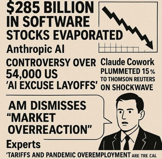 앤트로픽은 지난 2월 초 대화형 AI '클로드 코워크(Claude Cowork)'의 새로운 플러그인을 공개했다. 법률, 금융, 영업, 데이터 분석 등 화이트칼라 직종의 핵심 업무를 자동화하는 기능이다. 계약서 검토, 고객관계관리(CRM), 법률 조사 등 기존 소프트웨어 회사들이 판매하던 주력 상품과 직접 경쟁하는 구조다.