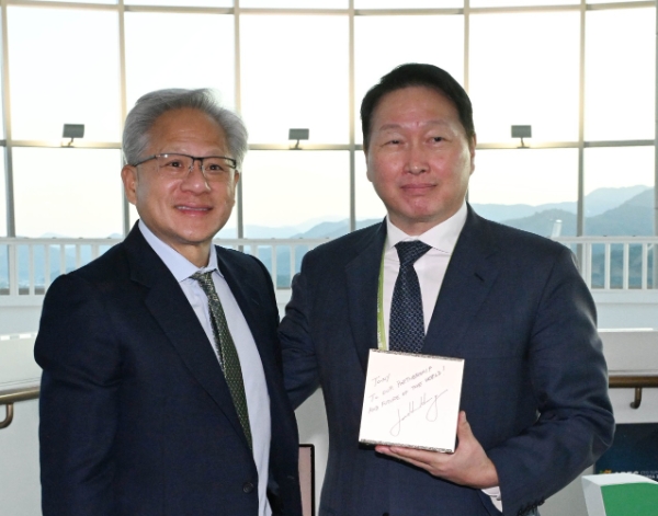 재계에 따르면 최태원 회장은 지난 3일 미국으로 출국, 현지 시각 5일 미국 캘리포니아주 엔비디아 본사 인근의 한국식 치킨집 '99치킨'에서 황 대표를 접견했다.