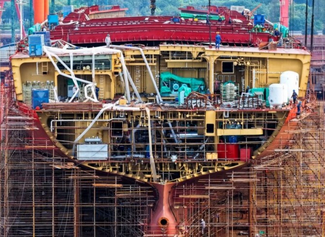14일(현지시각) 내셔널 인터레스트 등 언론과 마이클 윈토리(Michael Wintory) 등 군사 전문가들에 따르면, 현재 중국은 전 세계 조선 총톤수의 54% 이상을 점유하며 독주하고 있다.