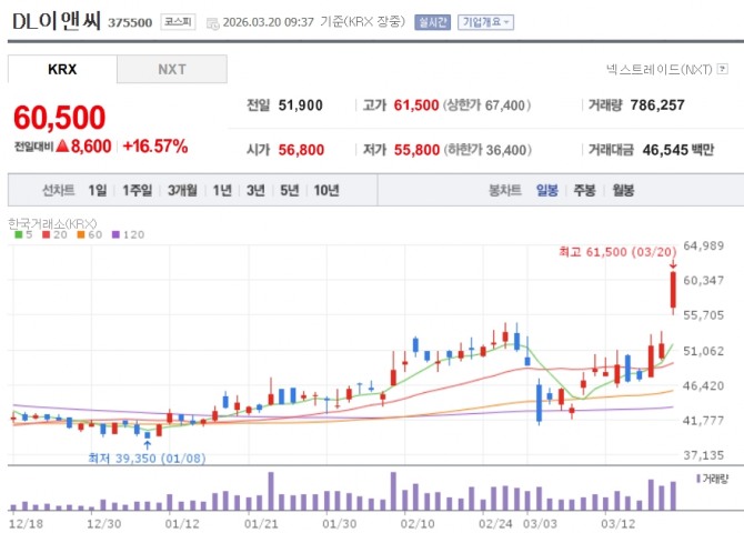 이미지 확대보기20일 한국거래소에 따르면 이날 오전 9시 37분 기준 DL이앤씨는 전 거래일 대비 16.57% 오른 6만500원에 거래되고 있다. GS건설은 전장 대비 13.10% 상승한 2만9350원에 거래 중이다. 이밖에 계룡건설(10.66%), KCC건설(9.72%), 대우건설(8.53%), 금호건설(8.43%) 등 건설주가 일제히 강세다.